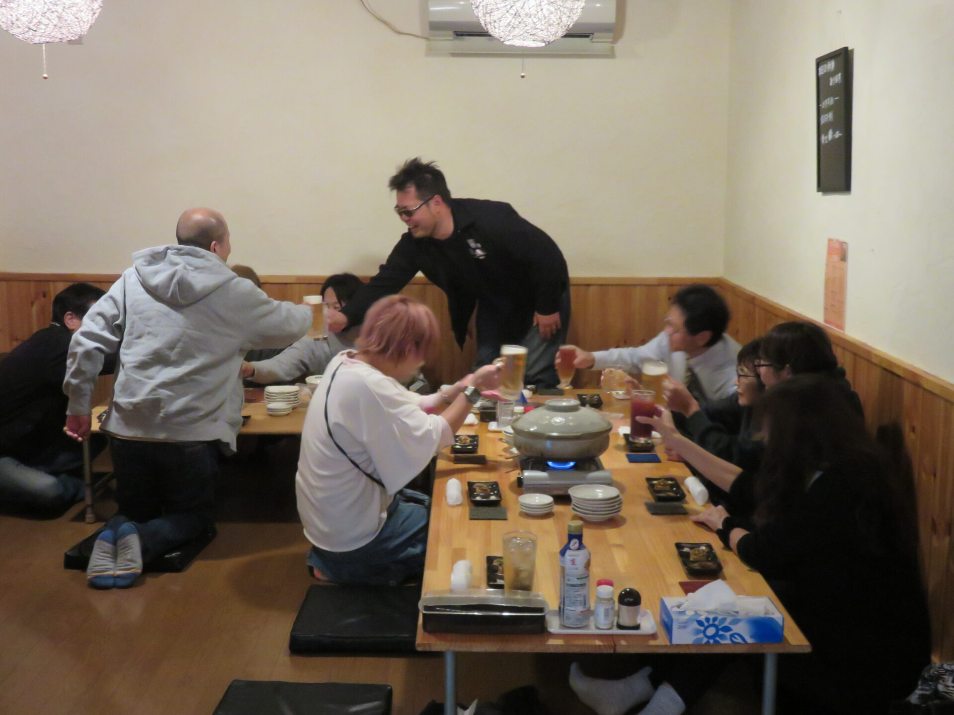 先ほどまでの交流会も話が随所で盛り上がりをみせていましたが、懇親会は更に大盛り上がり。趣味の話だったり、ペットの話、民商に入る前の話など話は尽きず。次々運ばれてくる美味しい食べ物にお酒もはかどりあっという間の時間…あとから聞き知りましたが、予定時間はだいぶ過ぎていたとか..北むらさん、ありがとうございます(*´︶`*)